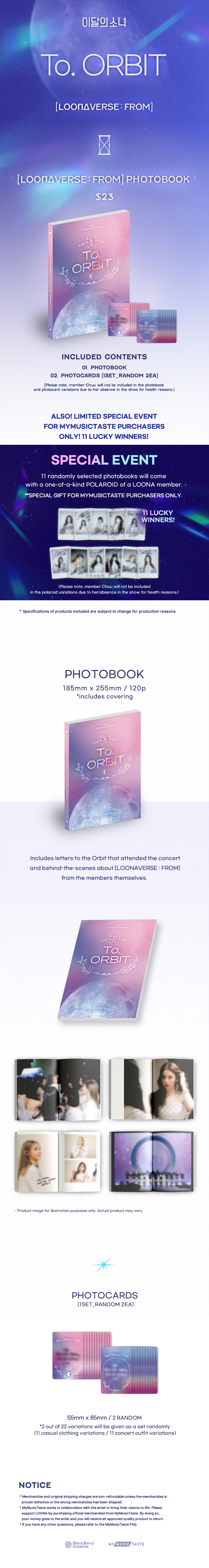 Due to a production delay, please be informed that the 이달의 소녀 CONCERT [LOONAVERSE : FROM] Photobook is expected to be shipped starting from the 3rd week of April 2022.