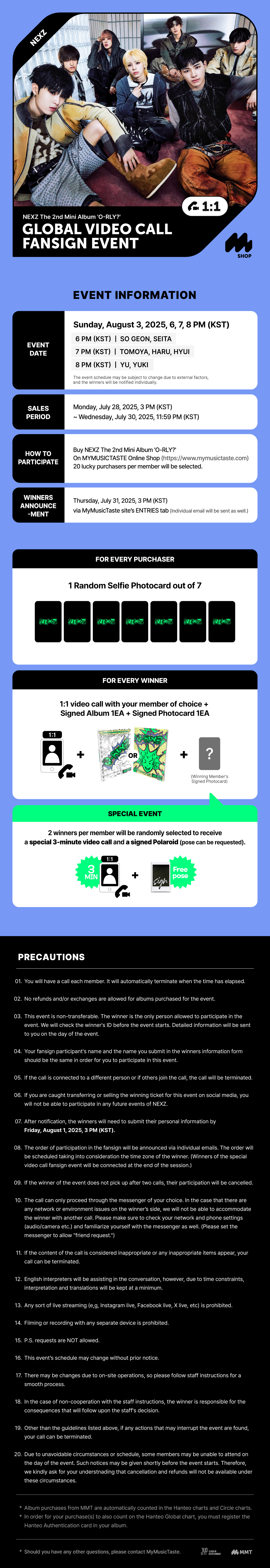 • 140 (20 per member) winners will be announced on July 31, 2025 at 3:00 PM KST  - please check your email and/or your MyMusicTaste account for this information.