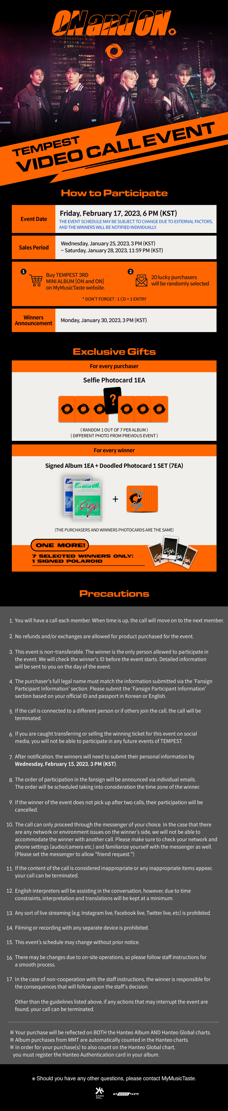 Buy TEMPEST 3RD MINI ALBUM [ON and ON] and automatically enter for the global fansign event!