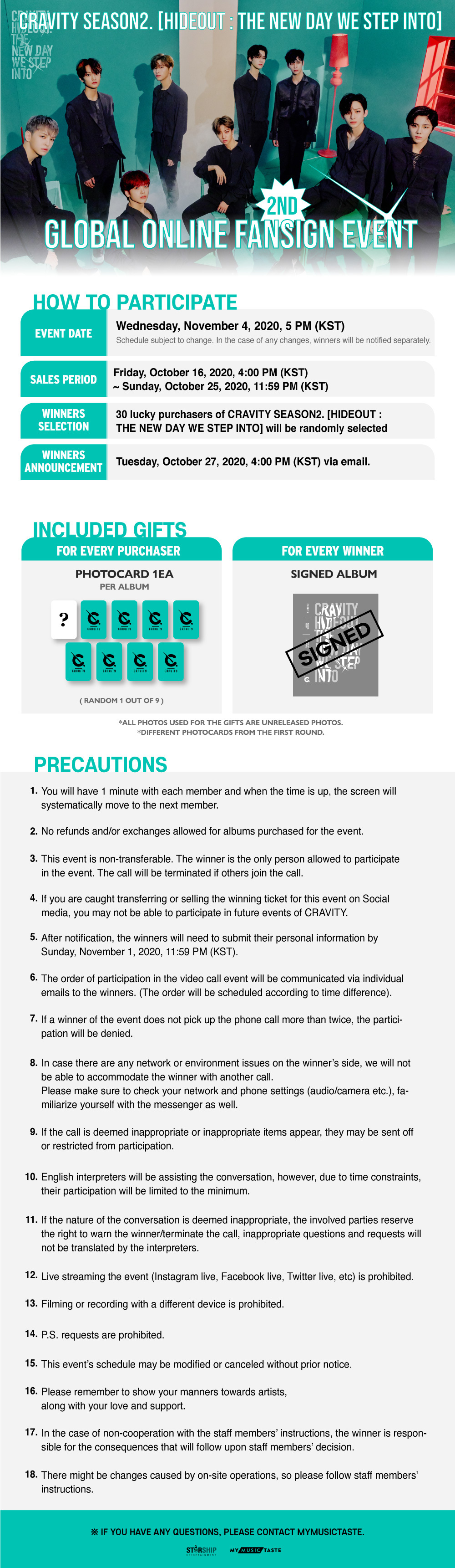 ![CRAVITY - SEASON2. [HIDEOUT : THE NEW DAY WE STEP INTO] GLOBAL ONLINE FANSIGN EVENT](https://prodmsamedia.mymusictaste.com/cshopproject/images/7dcf4b0c0f7b11eb83e70a58a9feac2a.jpeg)