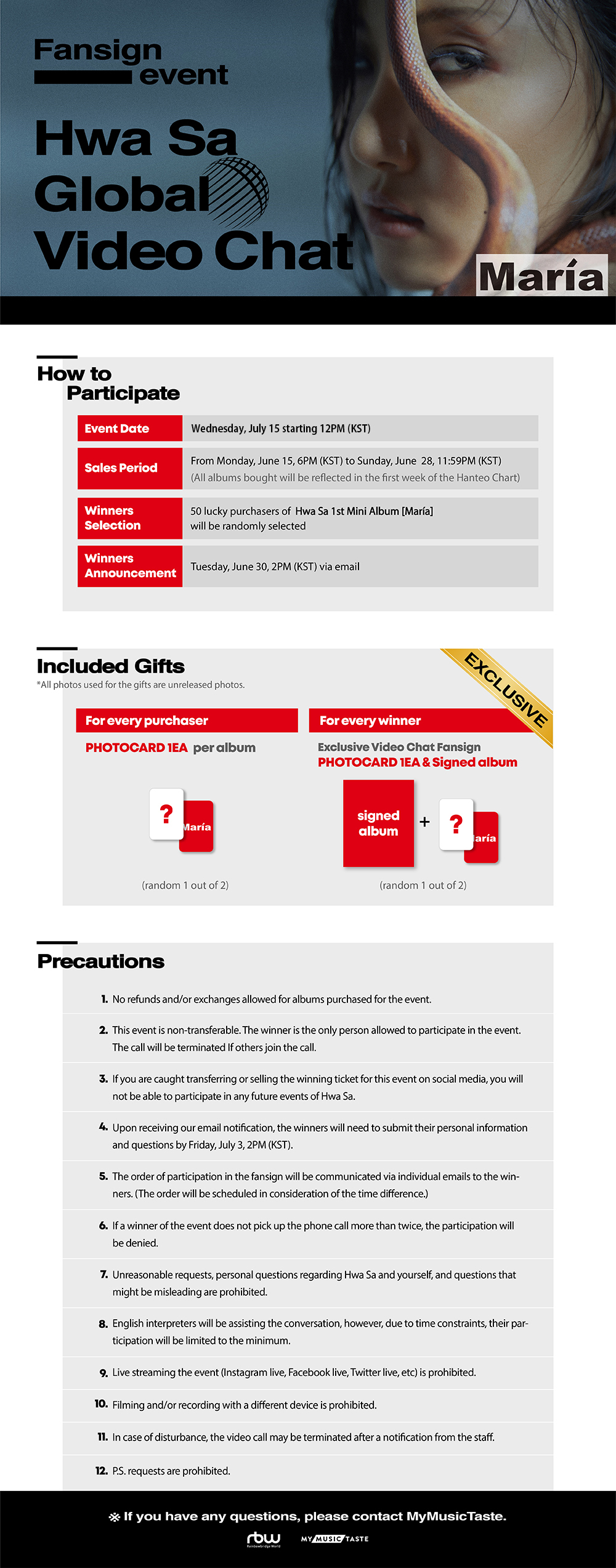 ※ Fansign Events of MyMusicTaste are conducted according to management guidelines. Therefore, the operation method differs by artist, please keep it in mind. Please do read through precautions thoroughly and make sure to follow them.