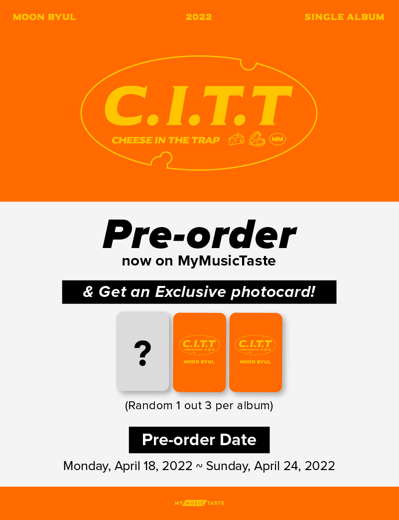 ![MOON BYUL - 2nd Single Album [C.I.T.T (Cheese in the Trap)]](https://prodmsamedia.mymusictaste.com/cshopproject/images/106bcba2bec811ec822a0a58a9feac02.jpeg)